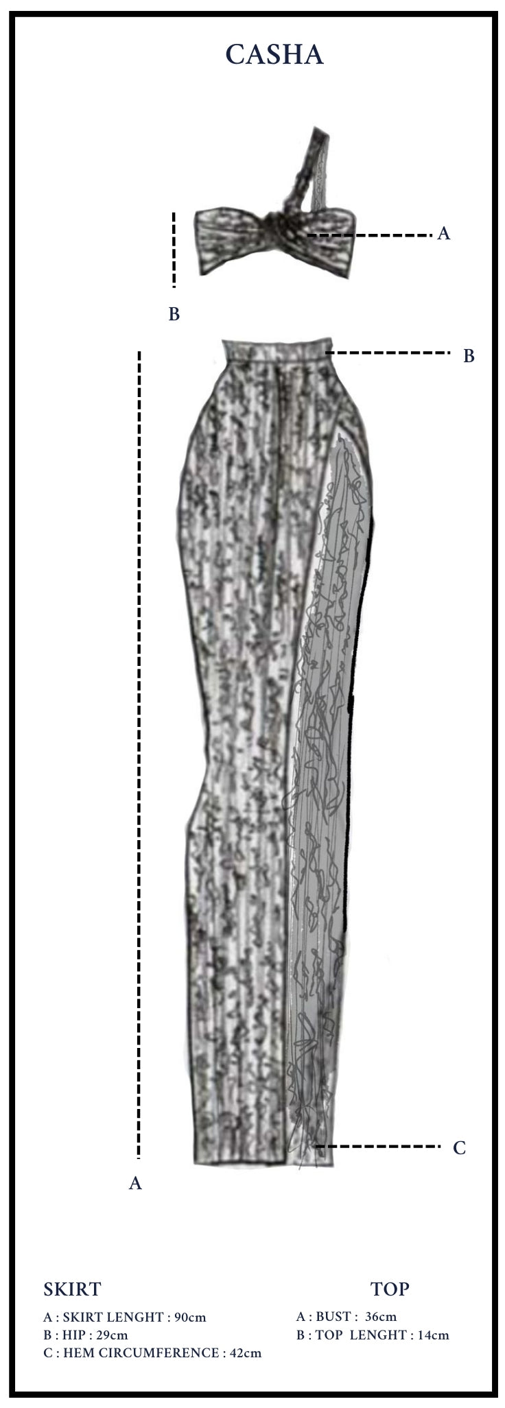 handmade in Bali with our signature popcorn knit. Featuring a twisted bandeau style top with a single shoulder strap and a high slit midi skirt, this look is equal parts bold and beachy perfect for sunset drinks or moonlit strolls by the pool.